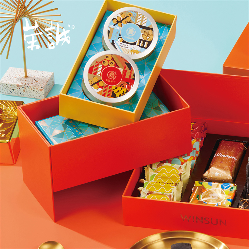 【編 碼】 CGZ2211 【條形碼】 6925755535154 【尺 寸】 31x29x18cm 【凈含量】 1107g 【規(guī) 格】 1107gx4盒/箱 【內(nèi)容物】 100g開心果x1,88g牛軋堅果酥(原味)x1,100g蔓越莓干x1,100g綜合果仁x1,35g特色果仁腐乳餅x2,35g絲絲濃香椰蓉餅x2,30g香妃鳳梨酥x4,30g黑金鳳梨酥x4,13.5g澳式金泊雞蛋卷(咸蛋黃)x6,8g蔓越莓曲奇x5,8g原味奶油曲奇x5,10g香焙杏仁酥x5,10g香焙蔓越莓酥x5,48g櫻花荔枝味曲奇x1,30g堅果撻x1
