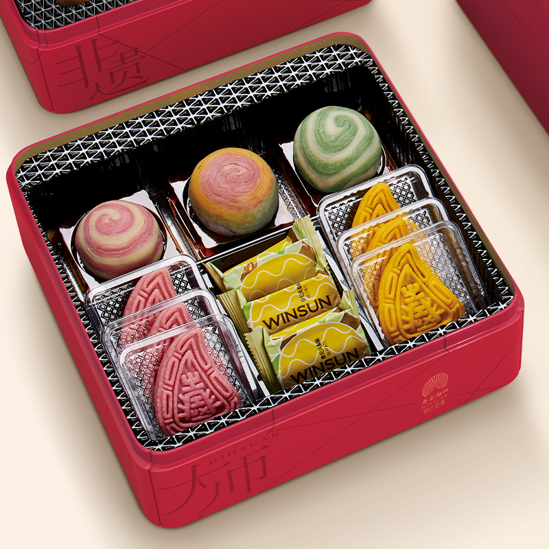 【編 碼】 YBT2319 【條形碼】 6925755561863 【尺 寸】 25x25x15cm 【凈含量】 800g 【規(guī) 格】 800gx6盒/箱 【內(nèi)容物】 80g潮汕雪媚娘蛋黃烏豆沙酥皮餅x1+80g潮汕雙烹酥皮餅x1+80g潮汕單叢鴨屎香茶酥皮餅x1+80g潮汕黃皮酥皮餅x1+30g潮汕報春紅殼桃糕點(山楂蔓越莓)x3+30g潮汕金葉黃殼桃糕點(肉松)x3+70g潮汕青梅桑椹彩虹酥x1+70g潮汕百香果洛神花彩虹酥x1+70g潮汕檸檬卡曼橘彩虹酥x1+30g香妃鳳梨酥x3