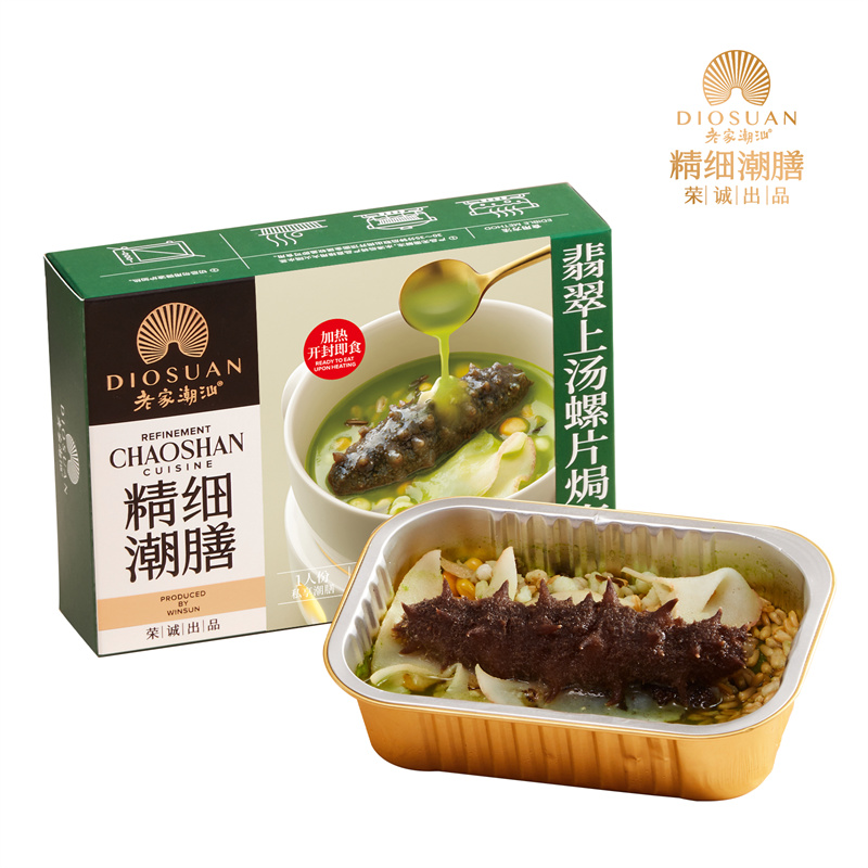 【編 碼】 JXCS2404 【條形碼】 6925755536038 【尺 寸】 16.3x4.2x11.3cm 【凈含量】 225g 【規(guī) 格】 225gx24盒/箱 【內(nèi)容物】 翡翠上湯螺片焗海參 225gx1