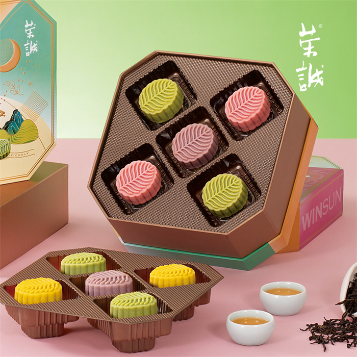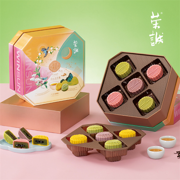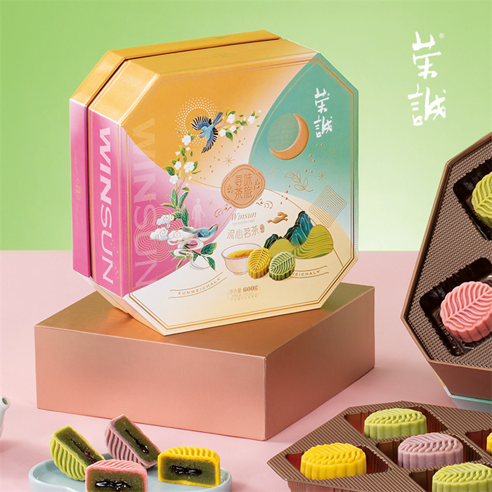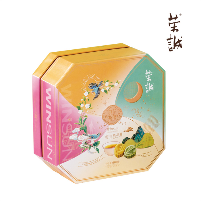 【編 碼】 YBZ2410 【條形碼】 6925755562525 【尺 寸】 24x24x10.3cm 【凈含量】 600g 【規(guī) 格】 600gx8盒/箱 【內(nèi)容物】 60g流心大紅袍茶月餅x2,60g流心單叢茶月餅x2,60g流心紅茶月餅x2,60g流心普洱茶月餅x2,60g流心龍井茶月餅x2