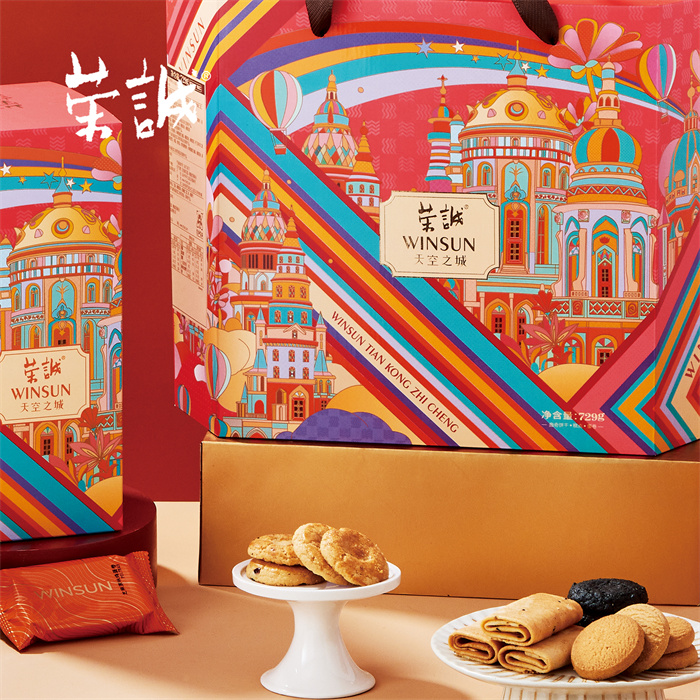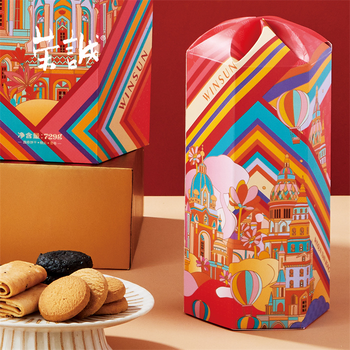 【編 碼】 CGZ2507 【條形碼】 6925755534461 【尺 寸】 37x15.5x29.5cm 【凈含量】 729g 【規(guī) 格】 729gx4盒/箱 【內(nèi)容物】  13.5g澳式金泊雞蛋卷(芝麻原味)x22,8g原味奶油曲奇x12,10g香焙黑芝麻酥x12,8g香焙桃酥x12,10g香焙花生酥x6,10g香焙蔓越莓酥x6
